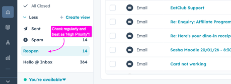 - Detection: If a customer replies to a closed ticket, it will automatically move to the "Reopened" view.