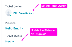 - Assign Ownership: Set the Ticket Owner to yourself.